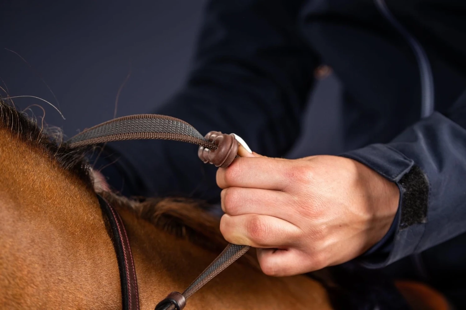 Verstelbare grip web teugels met 1 rubberen vastgestikte handstopper op elke teugel – 16 mm.