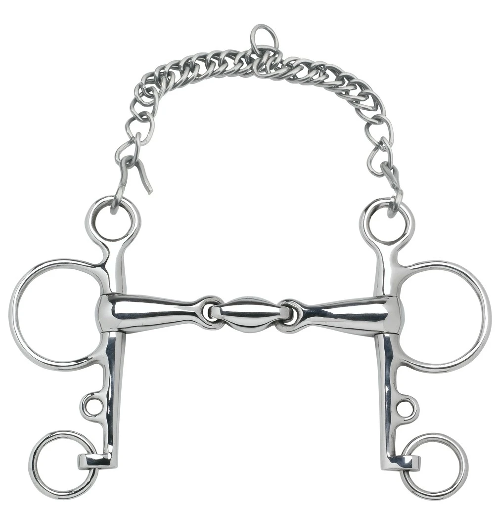 Hoe langer de scharen, hoe scherper de inwerking. - Een pelham kan gebruikt worden met 2 teugels; De ene teugel aan de bovenste ring voor een zachte aanleuning en de andere teugel aan de onderste ring voor het hefboomeffect van de pelham.
