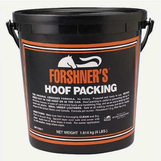 Paardeneigenaren en hoefsmeden vertrouwen al 25 jaar lang op deze sterke formule van de Forshner’s Hoof Packing.