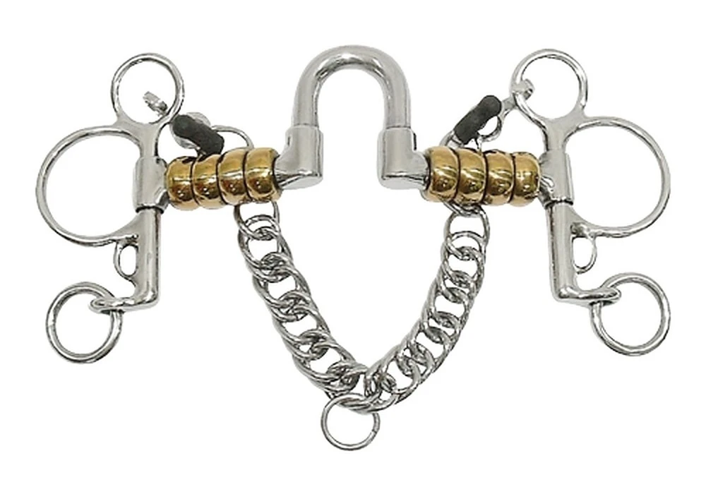 - Het mondstuk van dit bit is voorzien van een reeks rollers die het paard aanmoedigen om met het bit te spelen waardoor er ontspanning in de kaken ontstaat.