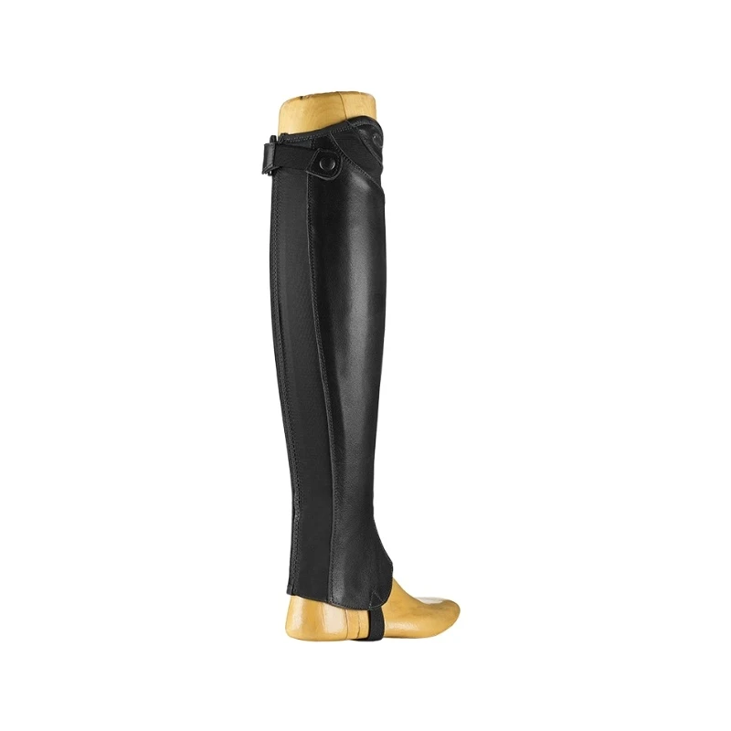 Mooie soepele mini chaps van buffelleer, dubbele elastische banden voor / achter, YKK®-ritssluiting aan de achterkant. Deze chaps passen op de Parlanti Komfy jodphurs.