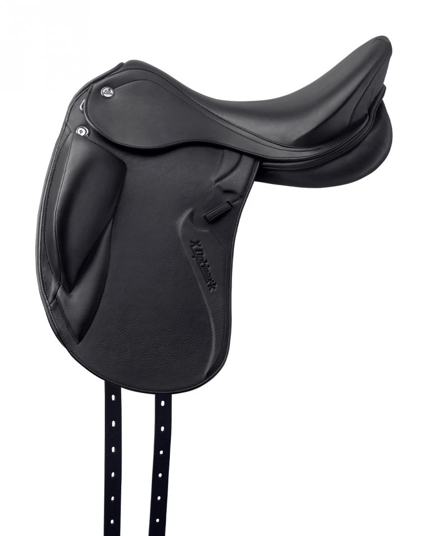 Dressuurzadel X – Optimax K Lux is een monoflap zadel met een zeer diepe en comfortabele zit om het close contact gevoel met het paard te vergroten. Het iets naar voren gesneden zweetblad met de iets hoger geplaatste wrongen garanderen meer vrijheid voor de knieën van de ruiter.