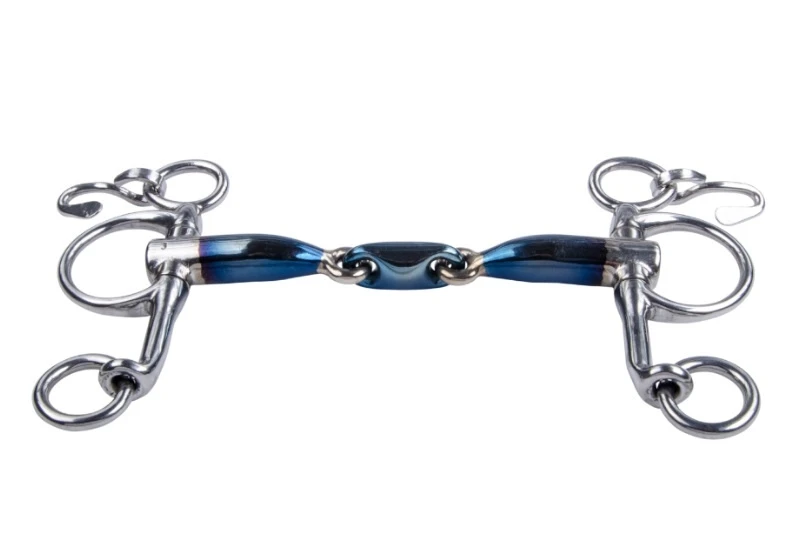 Hoe langer de scharen, hoe scherper de inwerking. - Een pelham kan gebruikt worden met 2 teugels; De ene teugel aan de bovenste ring voor een zachte aanleuning en de andere teugel aan de onderste ring voor het hefboomeffect van de pelham.