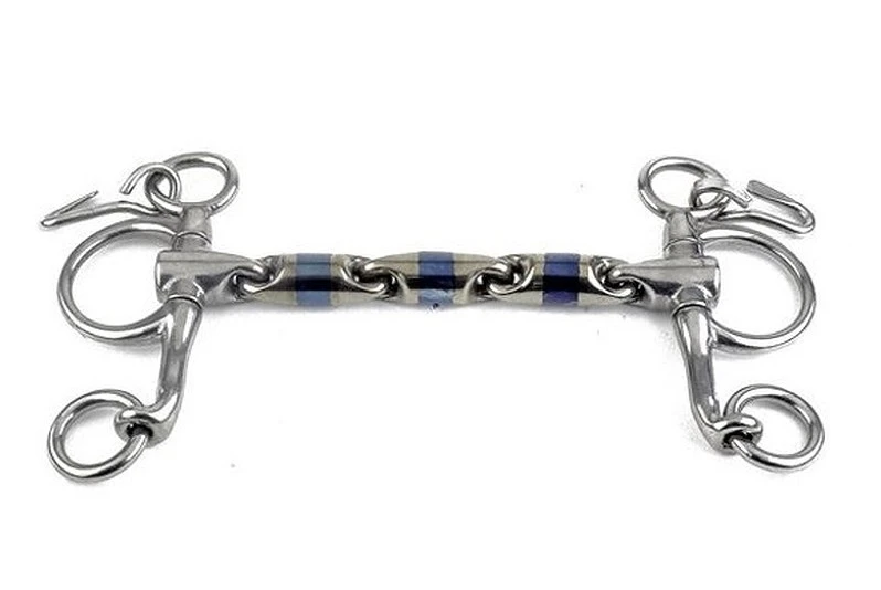 - Het waterford mondstuk bestaat uit een reeks afgeronde schakels dat zich flexibel naar de mond van het paard vormt, waardoor er een gelijkmatige drukverdeling ontstaat.